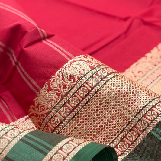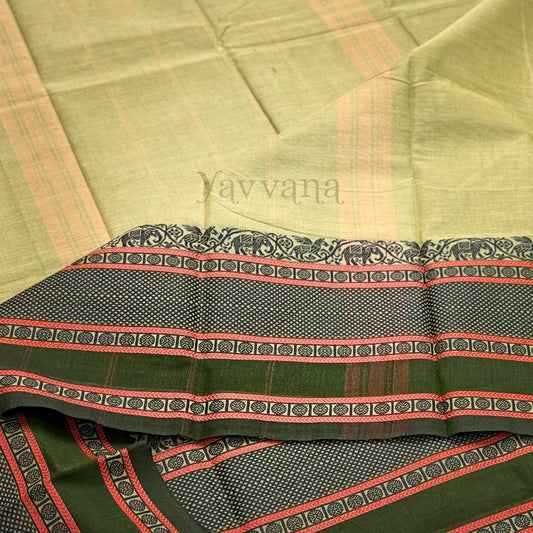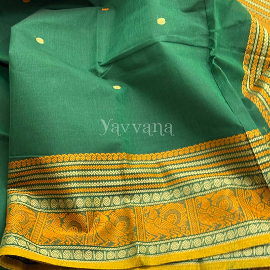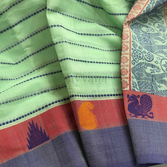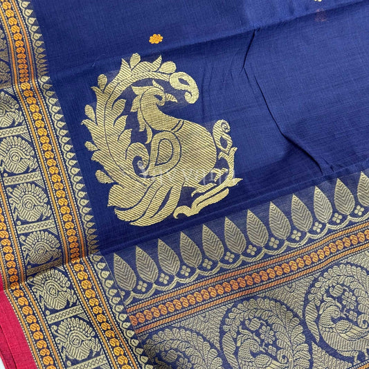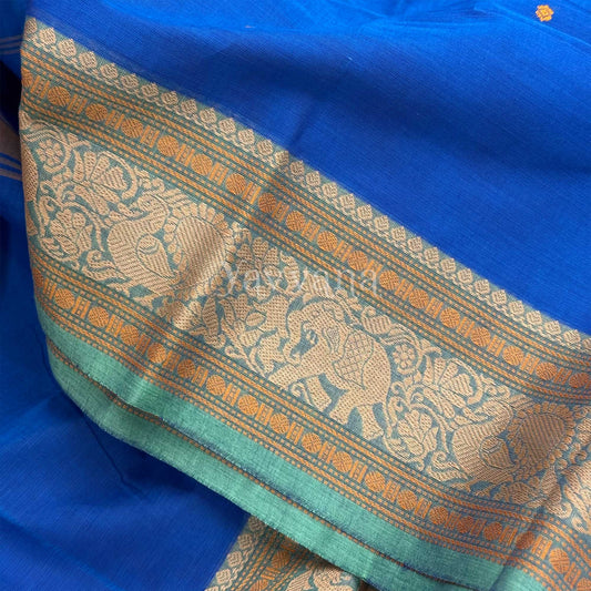 Vibrant Blue Cotton Saree with Elephant Motif Border